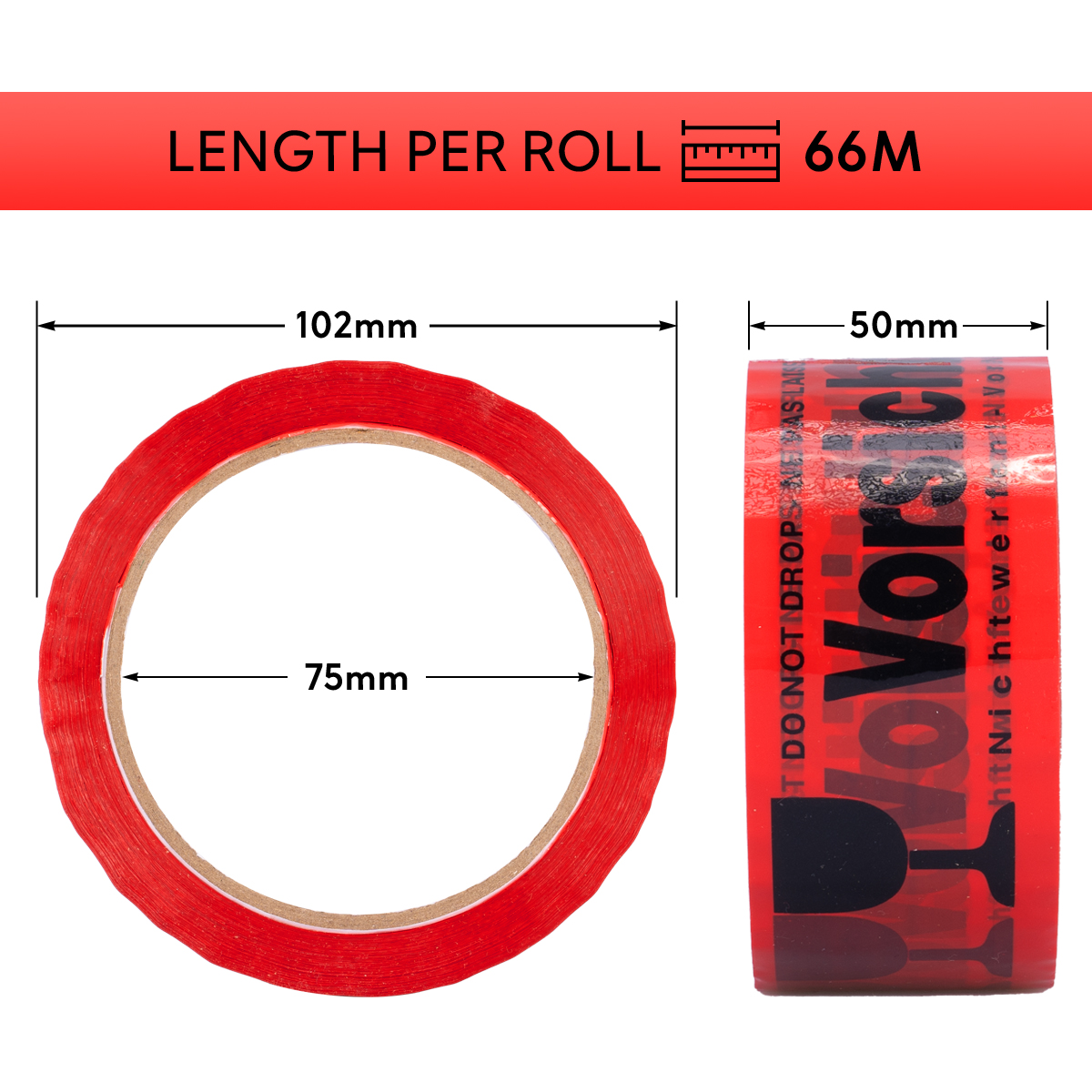 Produktinformationen "PP Vorsicht Glas Klebeband 50 mm x 66 m Warnklebeband standard abrollend"